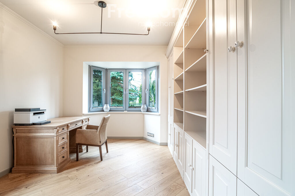 salonem, gabinetem i komfortowymi łazienkami wraz z sauną. Dom